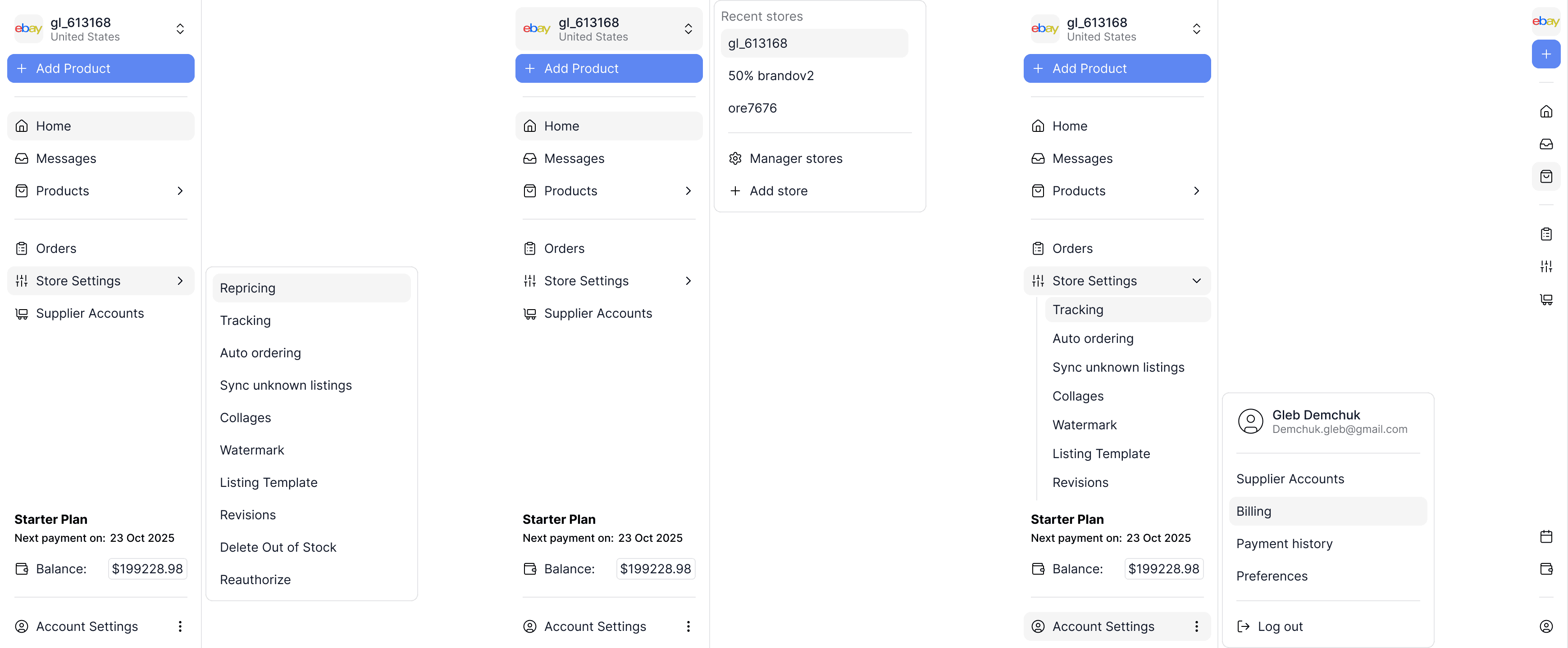 Sidebar across multiple states with easy primary/secondary navigation and CTA.