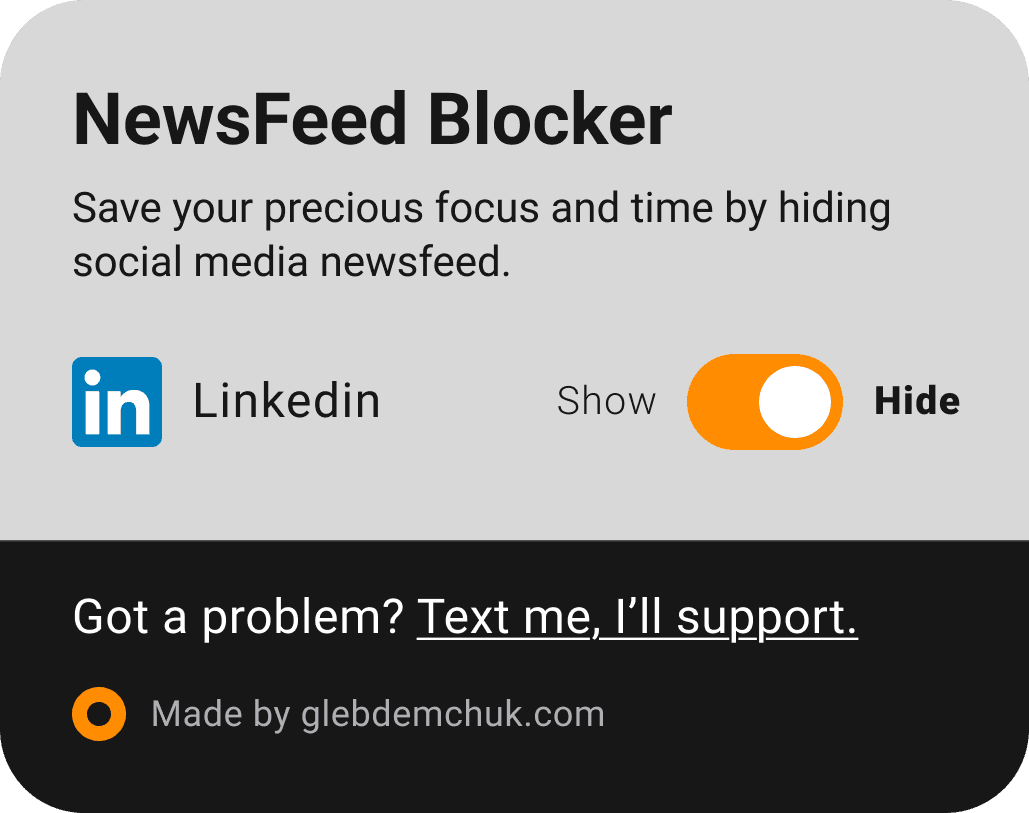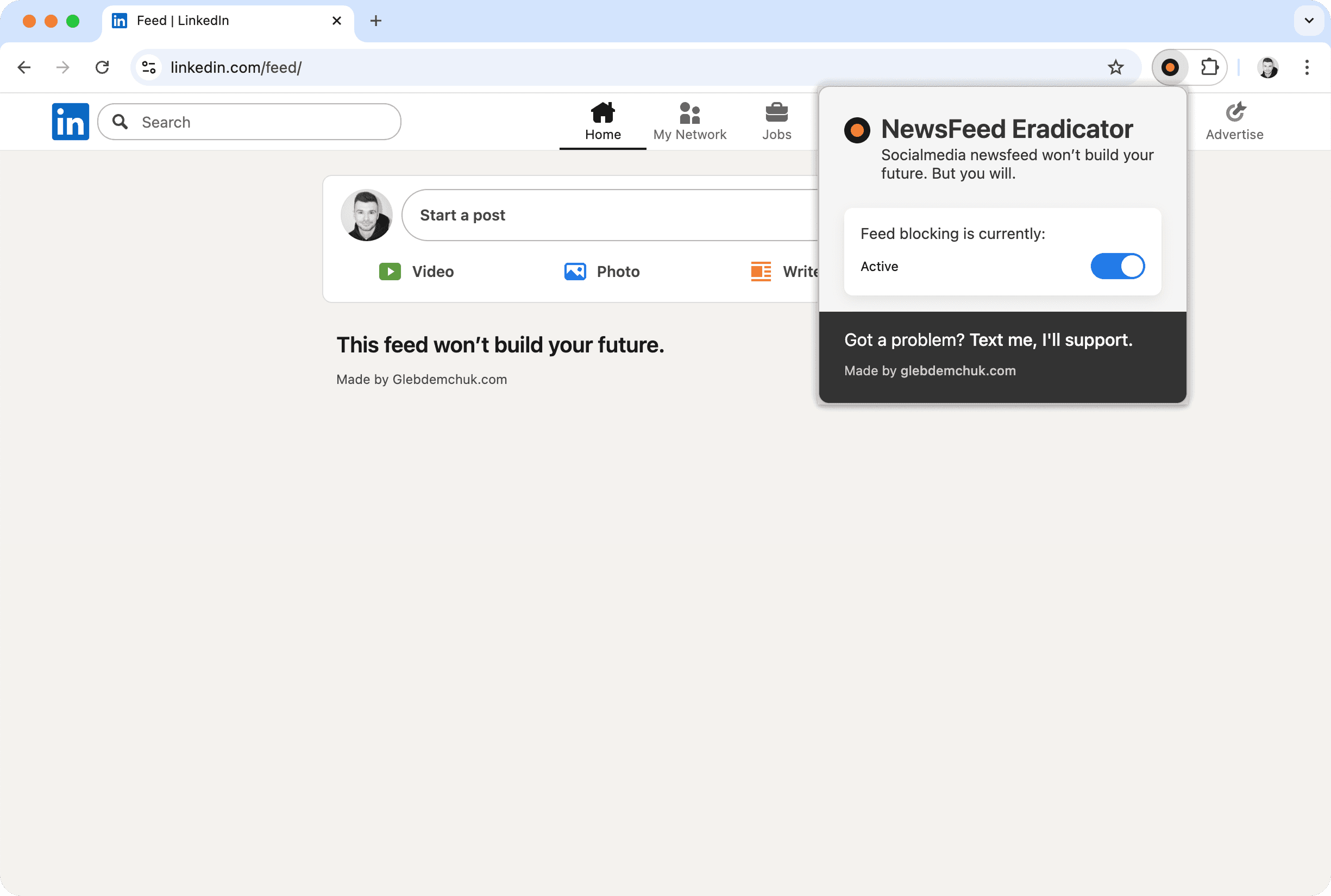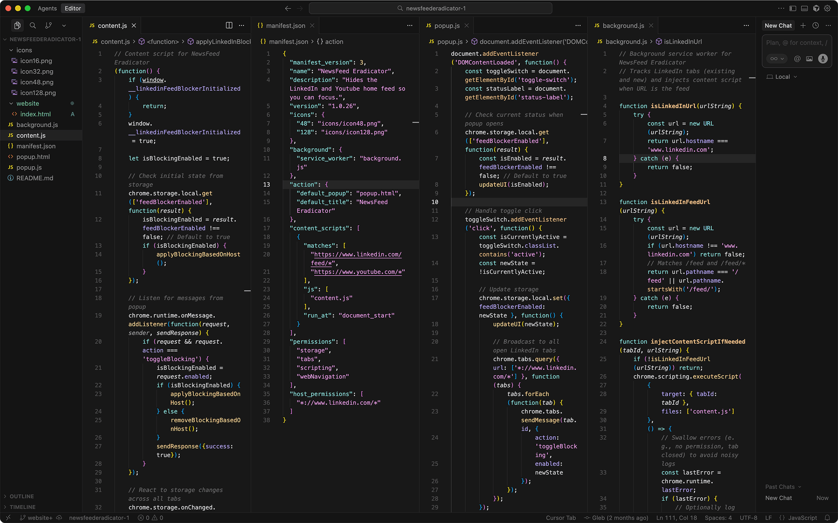 Ship a real, installable Chrome extension that blocks distracting feeds and replaces them with a clear interruption message—while building an AI-assisted workflow to independently deliver a 0→1 product and practice engineering skills.